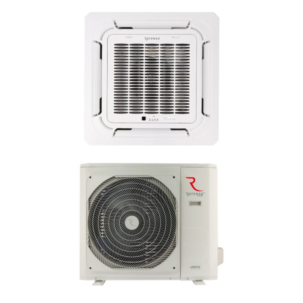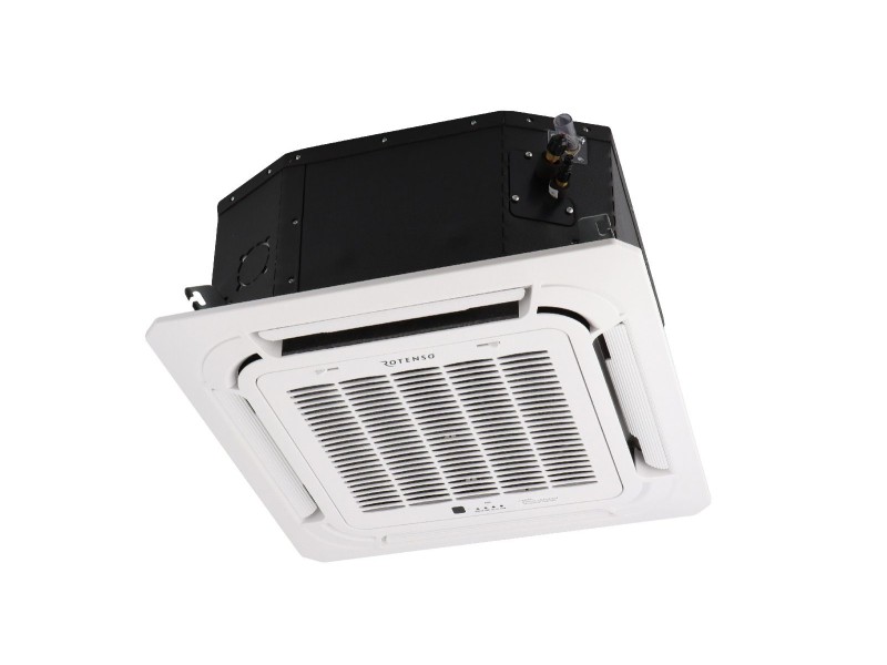 Klimatyzator kasetonowy Rotenso® Tenji T140Xi o mocy 14,0 kW, kompaktowych wymiarach i klasie chłodzenia A++. Dedykowany do pracy całorocznej (chłodzenie i ogrzewanie pomieszczeń).