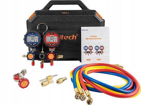 ✅ Tester układu chłodniczego oraz klimatyzacji – umożliwia zdiagnozowanie potencjalnej usterki układu poprzez porównanie ciśnienia strony wysokociśnieniowej i niskociśnieniowej ze specyfikacją układu klimatyzacyjnego.